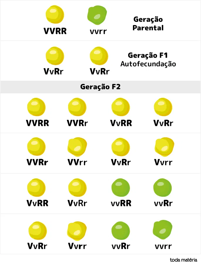 Por isso, fez o cruzamento dessa geração, pois imaginava que iriam surgir sementes verdes e rugosas, e ele estava certo.